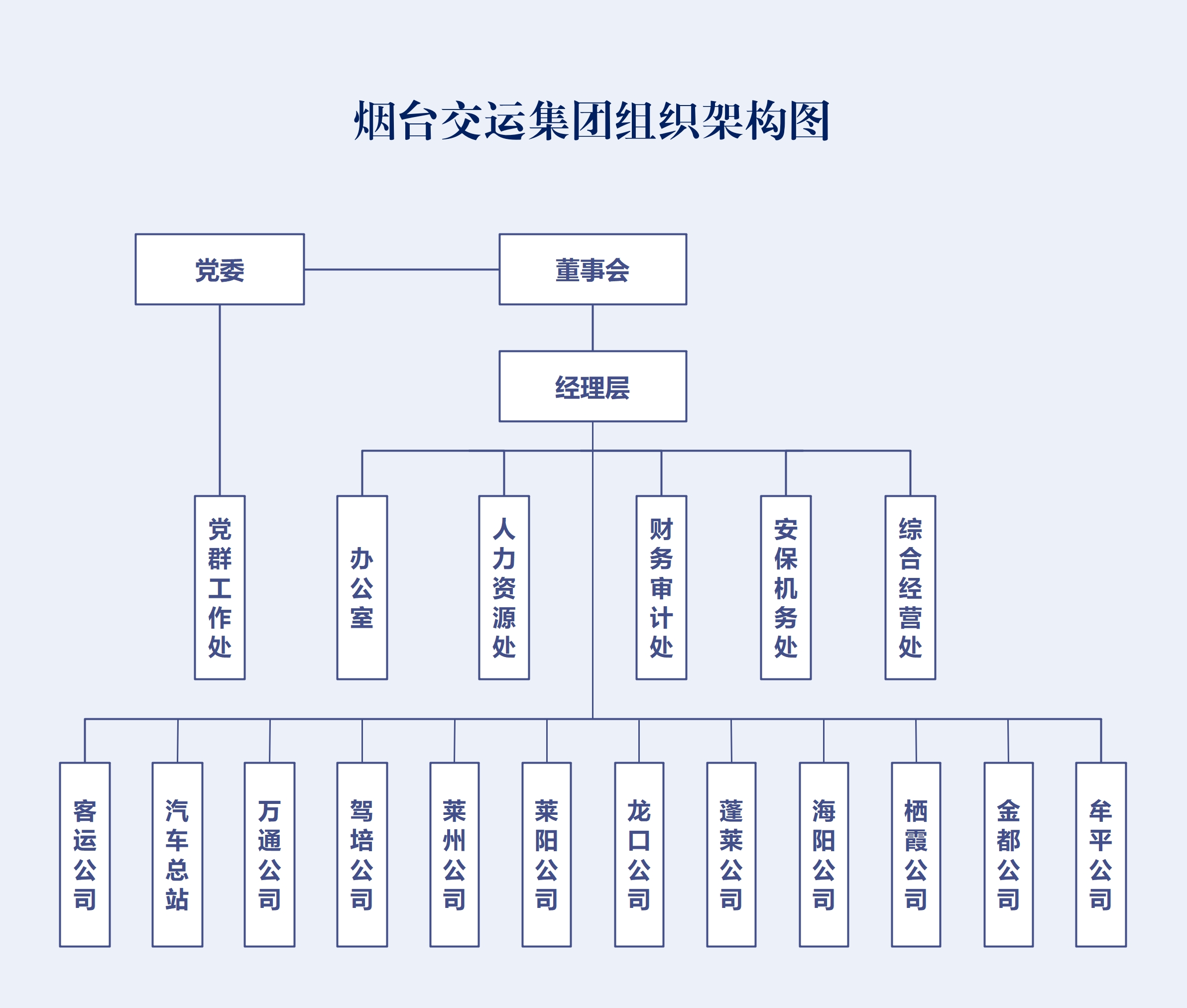煙臺交運集團(tuán)組織結(jié)構(gòu)模式是以直線職能制為主的經(jīng)營管理組織結(jié)構(gòu)。集團(tuán)總部設(shè)